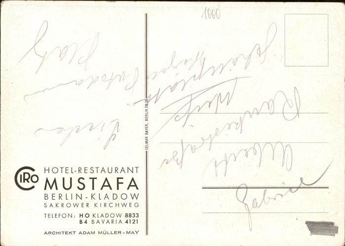 41314883 BERLIN CITY Hotel Restaurent Mustafa postalisch nicht gelaufen gute Erhaltung Alte Ansichtskarte Postkarte hz_W Katcode 11110011000000