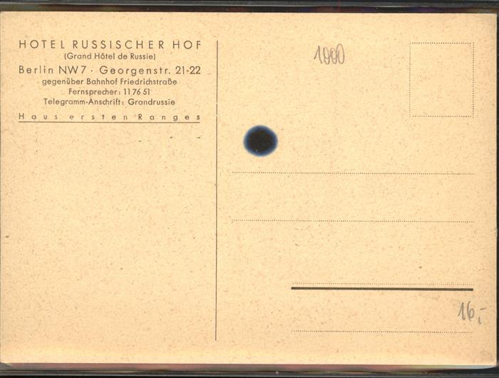 41288257 BERLIN CITY Hotel Russischer Hof postalisch nicht gelaufen gute Erhaltung Alte Ansichtskarte Postkarte hz_C Katcode 11110011000000
