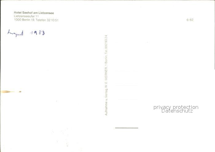 72591579 BERLIN CITY Hotel Seehof am Lietzensee postalisch nicht gelaufen Erhaltung siehe scans [WerneD78] KatCode: 11110011000000