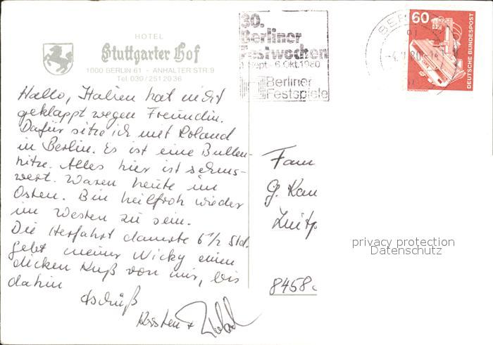 72105046 alte Postkarte BERLIN CITY Hotel Stuttgarter Hof postalisch gelaufen Erhaltung siehe scans KatCode: 11110011000000