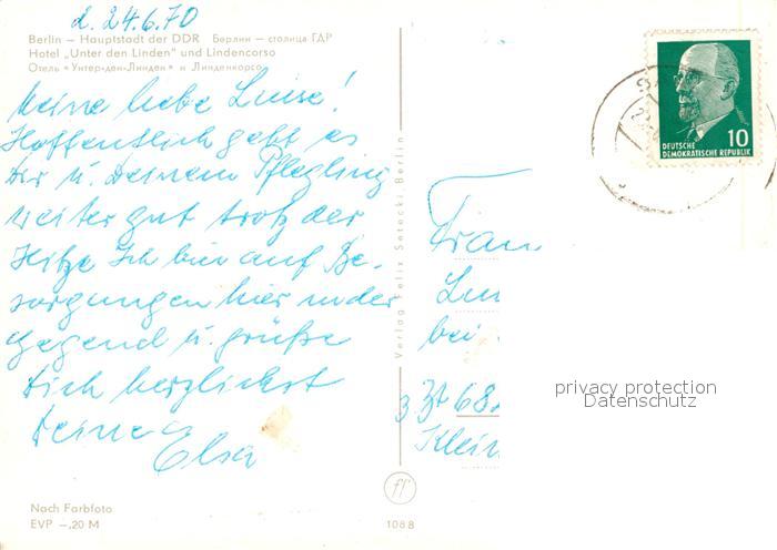 73067146 alte Postkarte BERLIN CITY Hotel Unter den Linden Lindencorso postalisch gelaufen Erhaltung siehe scans [NatalD47] KatCode: 11110011000000