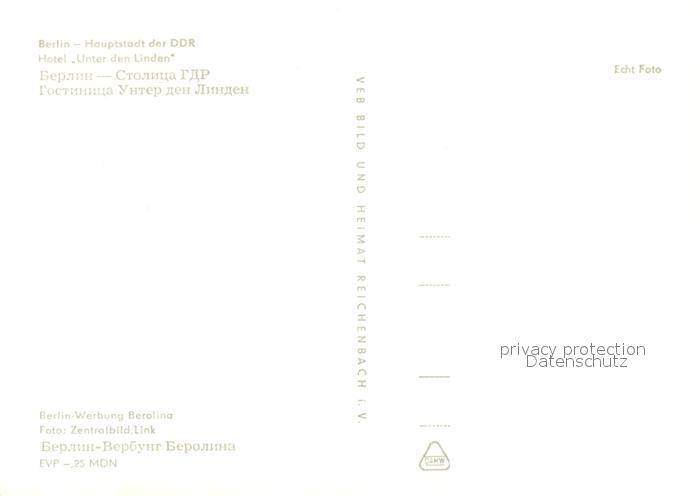 73031571 BERLIN CITY Hotel Unter den Linden postalisch nicht gelaufen Erhaltung siehe scans [WerneD78] KatCode: 11110011000000