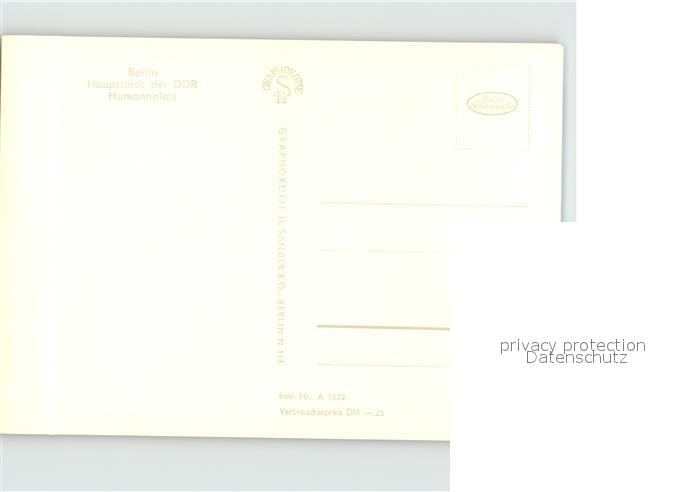 72431982 BERLIN CITY Humannplatz postalisch nicht gelaufen Erhaltung siehe scans KatCode: 11110011000000