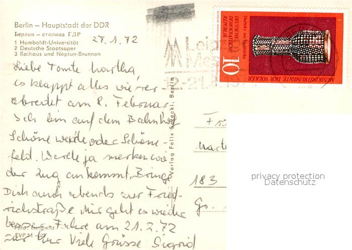 72917396 alte Postkarte BERLIN CITY Humboldt-Universitaet Deutsche Staatsoper Neptun-Brunnen postalisch gelaufen Erhaltung siehe scans [PaolaD17] KatCode: 11110011000000