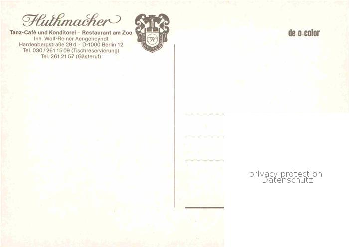 72828780 BERLIN CITY Huthmacher Tanz-Cafe postalisch nicht gelaufen Erhaltung siehe scans [NatalD47] KatCode: 11110011000000