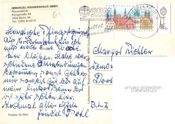 72960861 alte Postkarte BERLIN CITY Immanuel Krankenhaus Fliegeraufnahme Rheumaklinik postalisch gelaufen Erhaltung siehe scans [LiesaD40] KatCode: 11110011000000