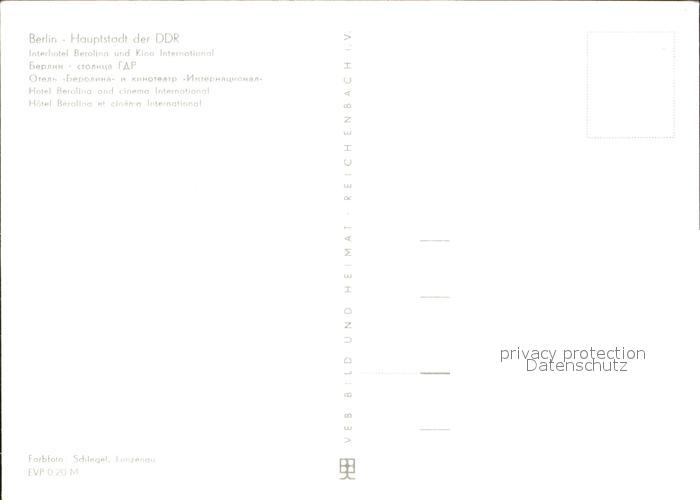 72036479 BERLIN CITY Interhotel Berolina und Kino International postalisch nicht gelaufen Erhaltung siehe scans KatCode: 11110011000000