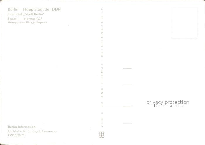 72383311 BERLIN CITY Interhotel Stadt Berlin postalisch nicht gelaufen Erhaltung siehe scans KatCode: 11110011000000