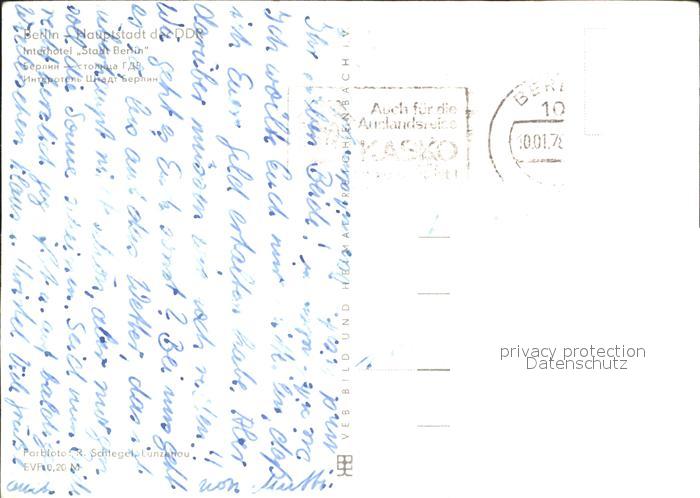 72310684 alte Postkarte BERLIN CITY Interhotel Stadt Berlin postalisch gelaufen Erhaltung siehe scans KatCode: 11110011000000