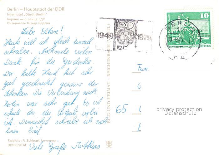 73041108 alte Postkarte BERLIN CITY Interhotel Stadt Berlin postalisch gelaufen Erhaltung siehe scans [WerneD78] KatCode: 11110011000000