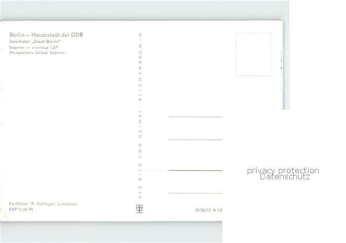 72078749 BERLIN CITY Interhotel Stadt Berlin postalisch nicht gelaufen Erhaltung siehe scans KatCode: 11110011000000