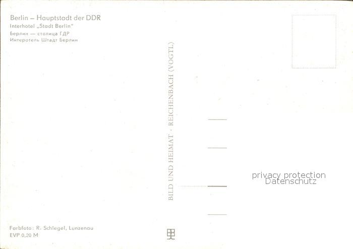 72045695 BERLIN CITY Interhotel Stadt Berlin postalisch nicht gelaufen Erhaltung siehe scans KatCode: 11110011000000