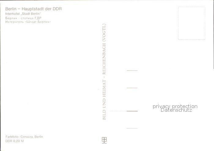 72034080 BERLIN CITY Interhotel Stadt Berlin postalisch nicht gelaufen Erhaltung siehe scans KatCode: 11110011000000