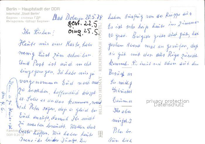 72022064 BERLIN CITY Interhotel Stadt Berlin postalisch nicht gelaufen Erhaltung siehe scans KatCode: 11110011000000