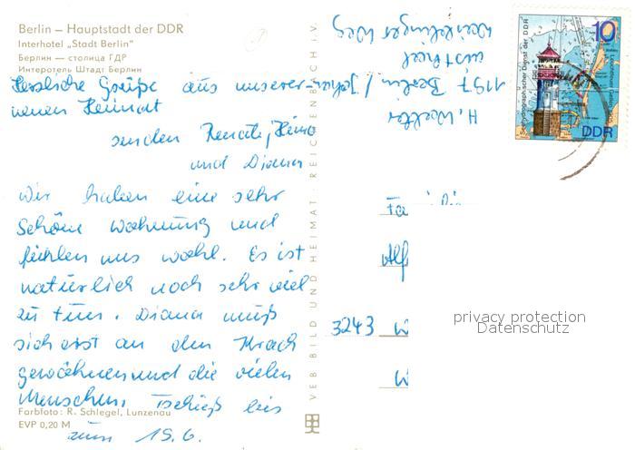 72935466 alte Postkarte BERLIN CITY Interhotel Stadt Berlin postalisch gelaufen Erhaltung siehe scans [WerneD78] KatCode: 11110011000000