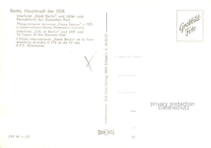 73105232 BERLIN CITY Interhotel Stadt Berlin Fernsehturm postalisch nicht gelaufen Erhaltung siehe scans [WerneD78] KatCode: 11110011000000