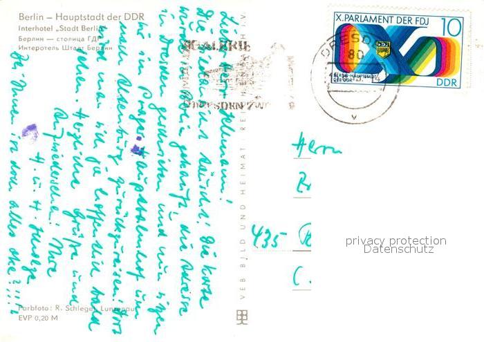 72991217 alte Postkarte BERLIN CITY Interhotel Stadt Berlin Hauptstadt der DDR postalisch gelaufen Erhaltung siehe scans [FriedD77] KatCode: 11110011000000