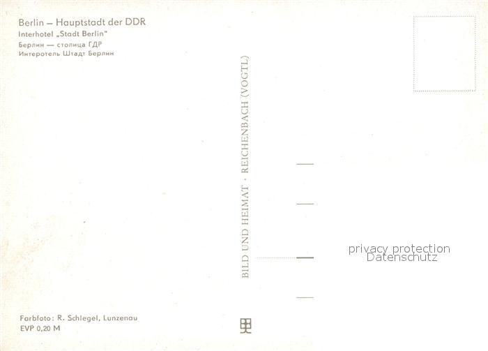 72953241 BERLIN CITY Interhotel Stadt Berlin Hauptstadt der DDR postalisch nicht gelaufen Erhaltung siehe scans [FriedD77] KatCode: 11110011000000