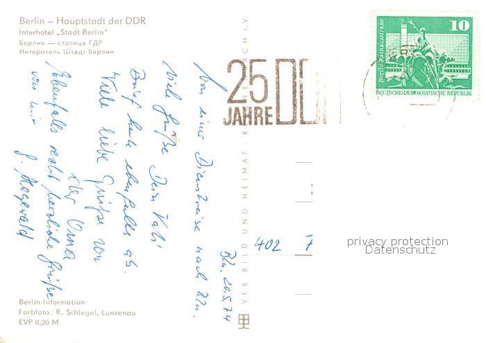 73063146 alte Postkarte BERLIN CITY Interhotel Stadt Berlin Hauptstadt der DDR postalisch gelaufen Erhaltung siehe scans [FriedD77] KatCode: 11110011000000