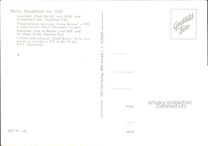 71986812 BERLIN CITY Interhotel Stadt Berlin und Fernsehturm postalisch nicht gelaufen Erhaltung siehe scans KatCode: 11110011000000