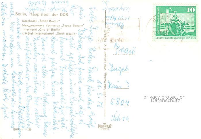72966696 alte Postkarte BERLIN CITY Interhotel Stadt Berlin Wasserspiele Hauptstadt der DDR postalisch gelaufen Erhaltung siehe scans [FriedD77] KatCode: 11110011000000