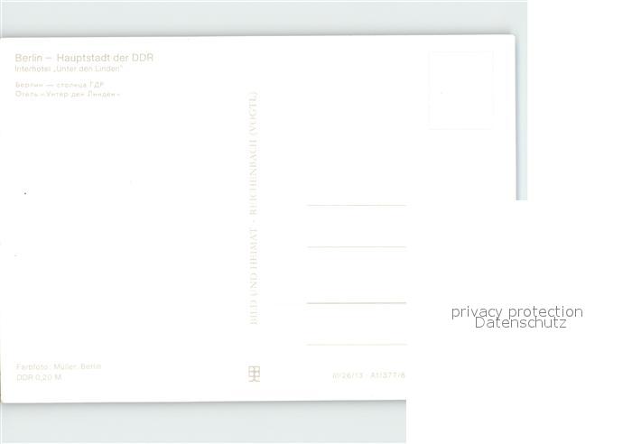 72110833 BERLIN CITY Interhotel Unter den Linden postalisch nicht gelaufen Erhaltung siehe scans KatCode: 11110011000000