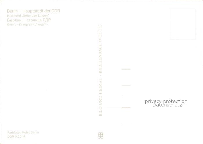 72373247 BERLIN CITY Interhotel Unter den Linden postalisch nicht gelaufen Erhaltung siehe scans KatCode: 11110011000000