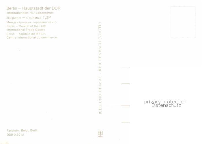 72844771 BERLIN CITY Internationales Handelszentrum postalisch nicht gelaufen Erhaltung siehe scans [LiesaD40] KatCode: 11110011000000