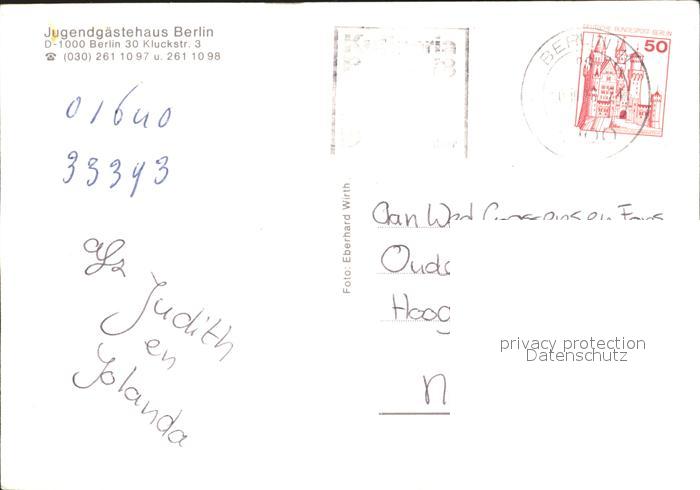 72394537 alte Postkarte BERLIN CITY Jugendgaestehaus postalisch gelaufen Erhaltung siehe scans KatCode: 11110011000000