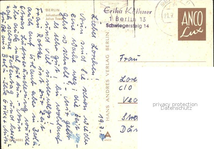 72113908 alte Postkarte BERLIN CITY Julius Turm Fliegeraufnahme postalisch gelaufen KatCode: 11110011000000