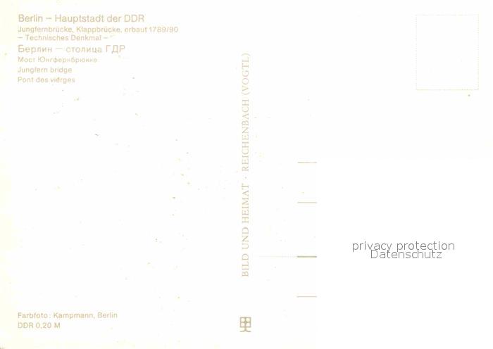 72848912 BERLIN CITY Jungfernbruecke Klappbruecke 18. Jhdt. Technisches Denkmal Hauptstadt der DDR postalisch nicht gelaufen Erhaltung siehe scans [FriedD77] KatCode: 11110011000000