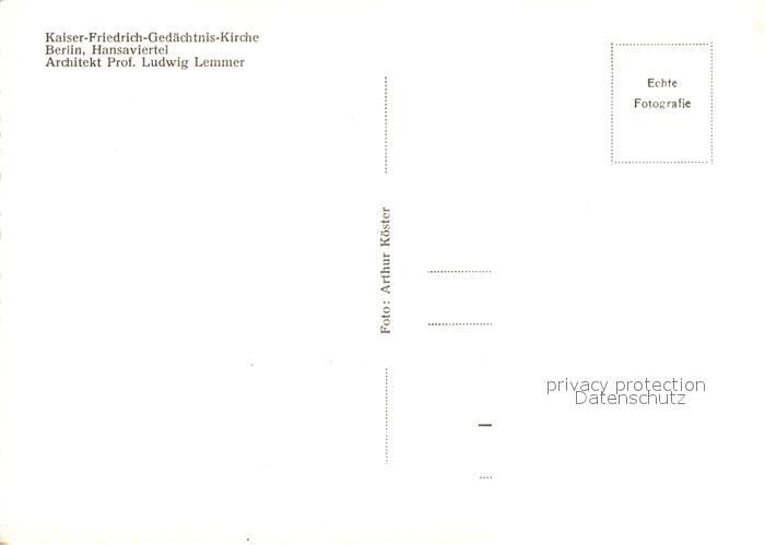 72980768 BERLIN CITY Kaiser Friedrich Gedaechtniskirche im Hansaviertel postalisch nicht gelaufen Erhaltung siehe scans [FriedD77] KatCode: 11110011000000
