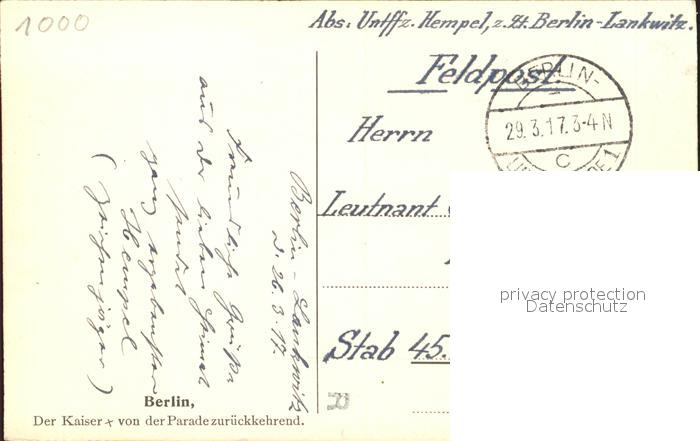 41790069 alte Postkarte BERLIN CITY Kaiser Parade postalisch gelaufen Feldpost Erhaltung siehe scans KatCode: 11110011000000