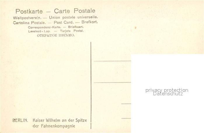 43277005 BERLIN CITY Kaiser Wilhelm an der Spitze der Fahnenkompagnie postalisch nicht gelaufen Erhaltung siehe scans [FriedD77] KatCode: 11110011000000
