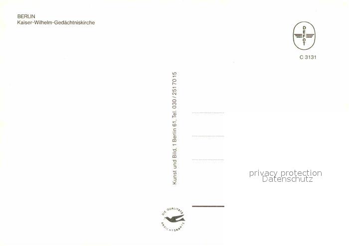 72841049 BERLIN CITY Kaiser-Wilhelm-Gedaechtniskirche postalisch nicht gelaufen Erhaltung siehe scans [NatalD47] KatCode: 11110011000000