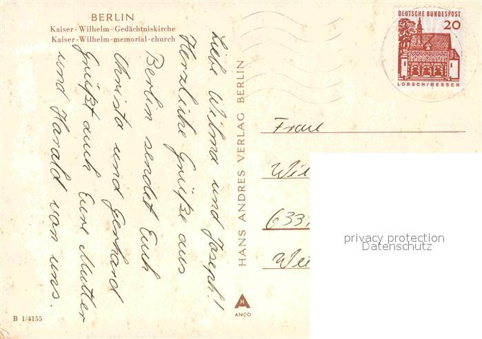 72850871 alte Postkarte BERLIN CITY Kaiser Wilhelm Gedaechtniskirche Innenansicht Orgel postalisch gelaufen Erhaltung siehe scans [FriedD77] KatCode: 11110011000000