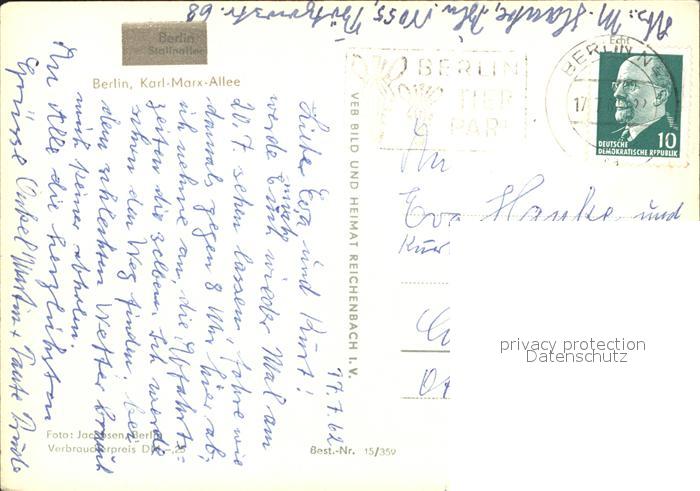 72251283 alte Postkarte BERLIN CITY Karl Marx-Alee postalisch gelaufen Erhaltung siehe scans KatCode: 11110011000000