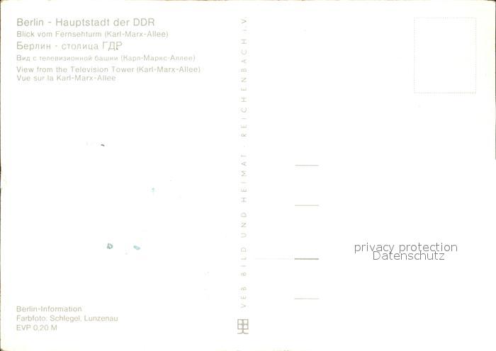 72313582 BERLIN CITY Karl Marx Alle Blick vom Fernsehturm bei Nacht postalisch nicht gelaufen Erhaltung siehe scans KatCode: 11110011000000