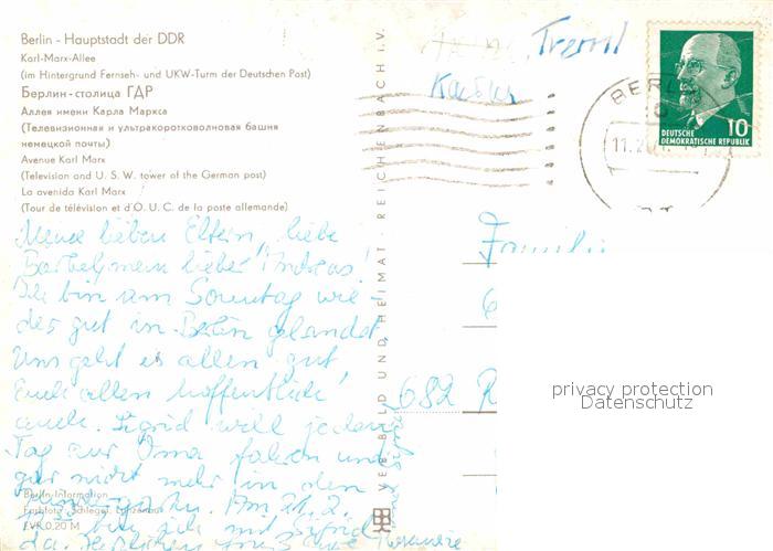 72844829 alte Postkarte BERLIN CITY Karl-Marx-Alle Fernsehturm postalisch gelaufen Erhaltung siehe scans [LiesaD40] KatCode: 11110011000000