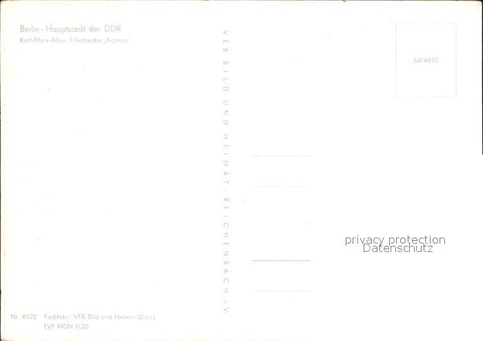 72373251 BERLIN CITY Karl-Marx-Alle Filmtheater Kosmos postalisch nicht gelaufen Erhaltung siehe scans KatCode: 11110011000000