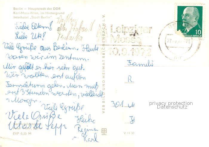 73044883 alte Postkarte BERLIN CITY Karl Marx Alle mit Interhotel Stadt Berlin postalisch gelaufen Erhaltung siehe scans [WerneD78] KatCode: 11110011000000
