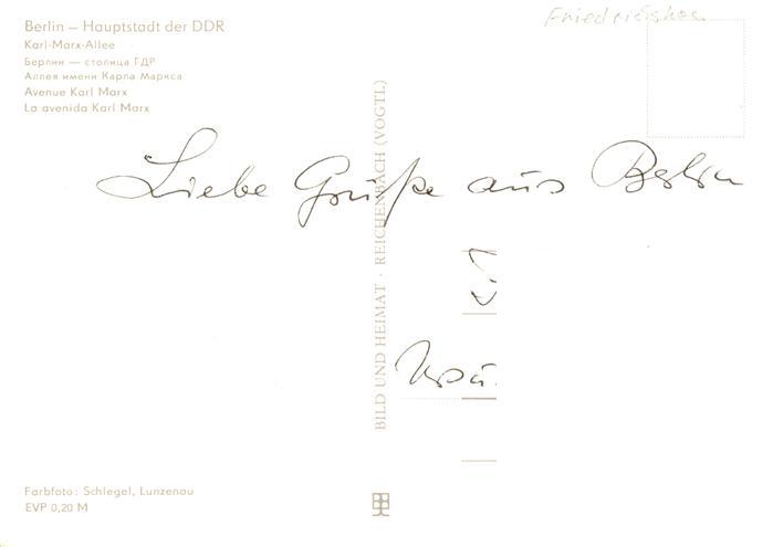 73914803 BERLIN CITY Karl Marx Allee postalisch nicht gelaufen Erhaltung siehe scans [WerneD78] Wern Katcode 11110011000000