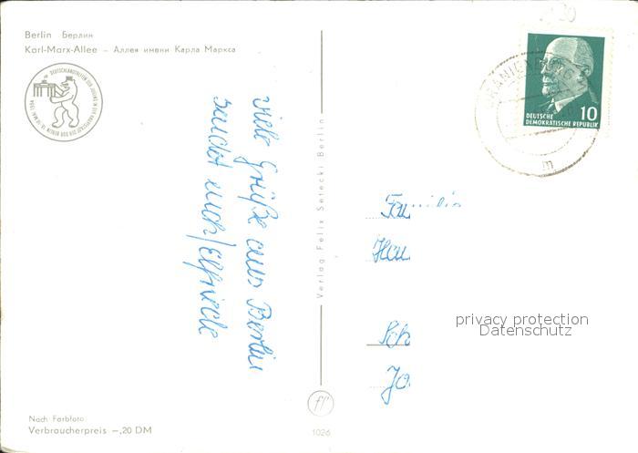 72592639 alte Postkarte BERLIN CITY Karl Marx Allee postalisch gelaufen Erhaltung siehe scans [FriedD77] KatCode: 11110011000000