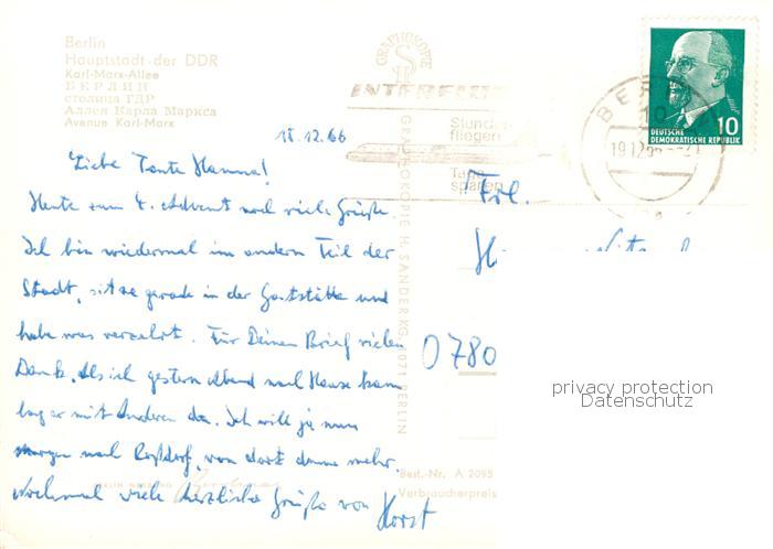 73849200 BERLIN CITY Karl Marx Allee postalisch gelaufen Erhaltung siehe scans [WerneD78] alte Postkarte Wern Katcode 11110011000000