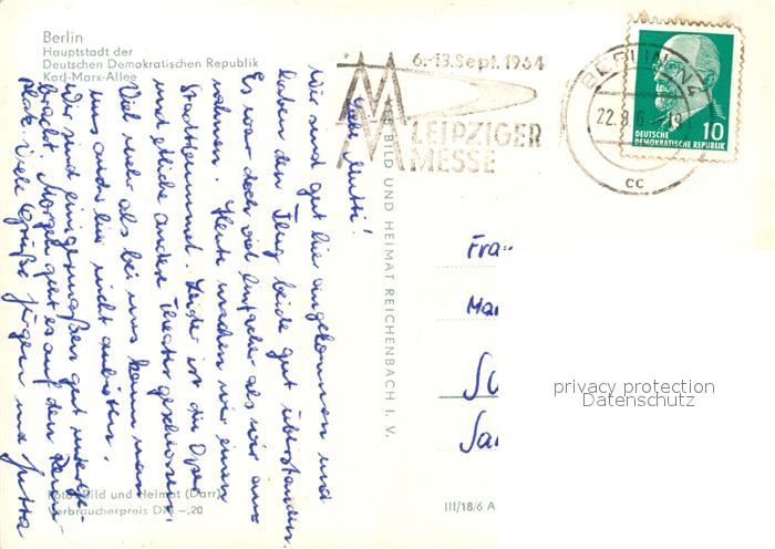 73036378 alte Postkarte BERLIN CITY Karl Marx Allee postalisch gelaufen Erhaltung siehe scans [KathaD81] KatCode: 11110011000000