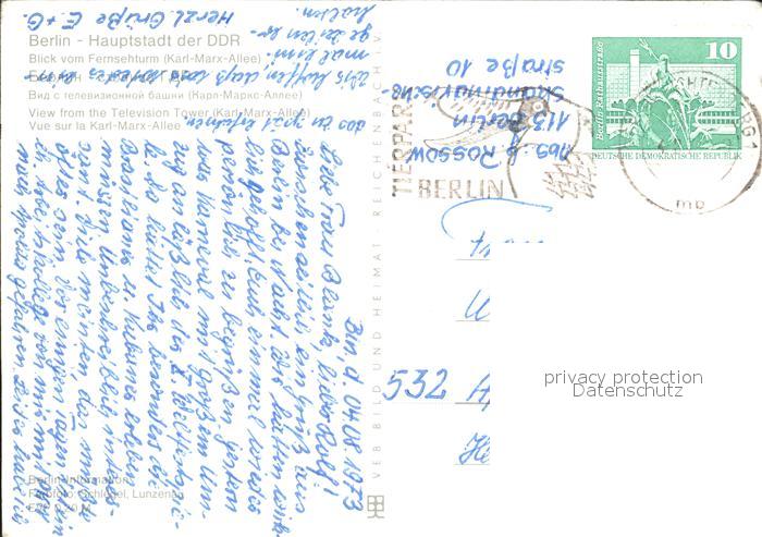 72156668 alte Postkarte BERLIN CITY Karl Marx Allee Blick vom Fernsehturm postalisch gelaufen Erhaltung siehe scans KatCode: 11110011000000