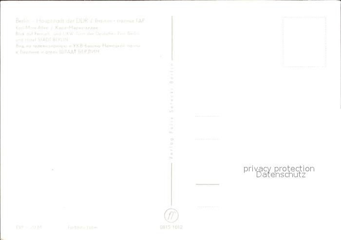 72136707 BERLIN CITY Karl Marx Allee Fernsehturm Hotel Stadt Berlin postalisch nicht gelaufen KatCode: 11110011000000