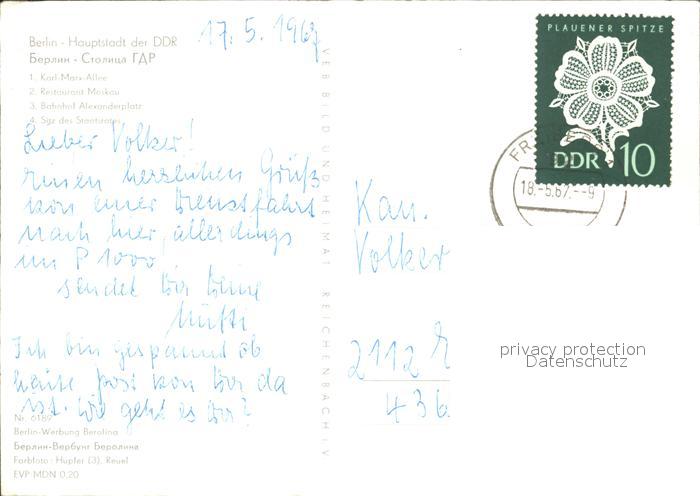 72152496 alte Postkarte BERLIN CITY Karl Marx Allee Hotel Moskau Bahnhof Alexanderplatz Sitz des Staatsrates postalisch gelaufen Erhaltung siehe scans KatCode: 11110011000000