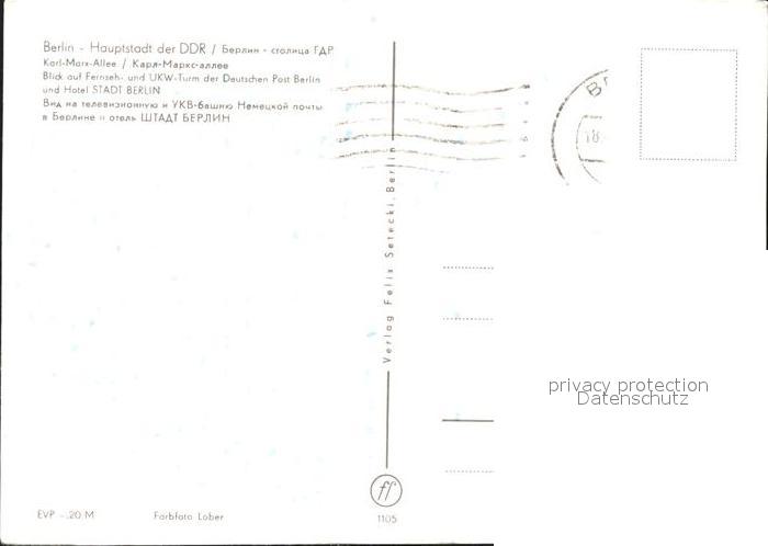 72248096 alte Postkarte BERLIN CITY Karl Marx Allee mit Fernsehturm postalisch gelaufen Erhaltung siehe scans KatCode: 11110011000000