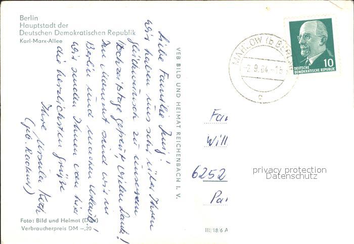 41790186 BERLIN CITY Karl-Marx-Alllee postalisch gelaufen Erhaltung siehe scans Alte Ansichtskarte Postkarte alte Postkarte Nata Katcode 11110011000000